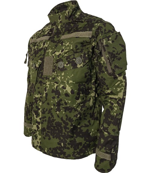 • Profesionální polní blůza německých speciálních jednotek vyráběná německou firmou Tacgear. Je zhotovena z odolného směsového materiálu se zpevňující protizátrhovou osnovou RipStop. Dvě náprsní kapsy společně s kapsami umístěnými v horní části rukávů poskytují dostatečný úložný prostor. Blůza se vyznačuje zvýšenou ochranou loktů - v této partii jsou zhotoveny kapsy s vyjímatelnými pryžovými panely (osvědčí se například při střelbě v lehu). Na blůze je našito několik panelů stuhových uzávěrů pro umístění nášivek. Obvod manžety rukávu lze nastavit.