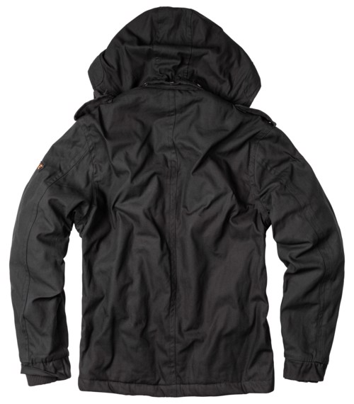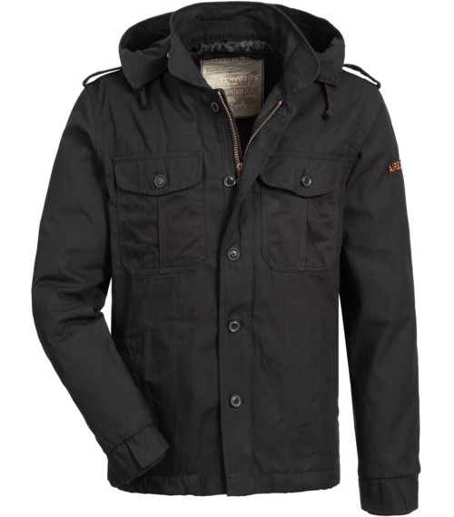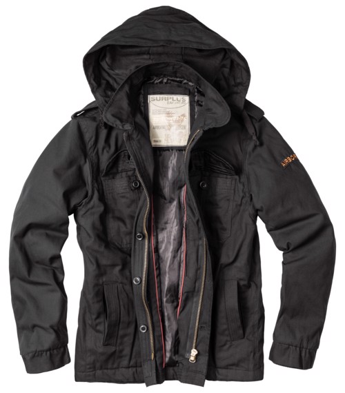 Teplejší látková bunda s podšívkou a kapucí do města i pro výpravy do přírody. Ideální pro jaro a podzim. Opraný vzhled materiálu, střih i použité prvky podtrhující military look.