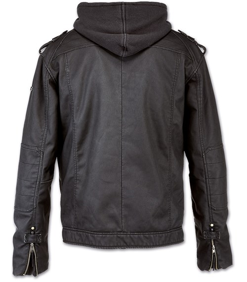 Black Rock Hooded představuje moderní stylovou bundu zhotovenou z velmi kvalitní umělé kůže v kombinaci s odnímatelnou bavlněnou vsadkou s kapucí. Bunda tak umožňuje snadno změnit vzhled podle libosti ve dvou podobách - s kapucí nebo bez kapuce - jednoduchým odepnutím vsadky pomocí zdrhovadla. Bunda je vybavena celkem sedmi kapsami. Dvě postranní jsou zavírané zdrhovadlem a ozdobené prošíváním se zpevňujícími nýty. Výrazné náprsní kapsy jsou kryté patkami se stiskacími knoflíky a za každou z nich se nachází další kapsa - vlevo se zapínáním zdrhovadlem, vpravo pak průhmatová. Poslední kapsa se nachází klasicky uvnitř na levém předním díle. I tuto kapsu lze zavřít zdrhovadlem. Na trupu je bunda opatřena lehkou bavlněnou podšívkou, v rukávech pak podšívkou z polyesteru. Bunda je zhotovena v oprané optice - kůže je na některých místech ve švech, hranách patek kapes a našitých detailech mírně zbroušená, aby dodala bundě patinu lehce použitého zboží. Kromě zmíněného prošívání a nýtů zdobí bundu nárameníky, prošité podložení loktů a zdrhovadla na koncích rukávů. Bunda Black Rock Hooded spojuje klasický vzhled s autentickým stylem městského oblečení.