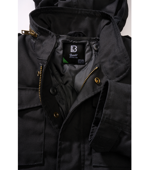 Bunda je vybavena zapínáním na přední zip krytý légou s druky, které zajišťují lepší ochranu proti větru. Na přední straně se nacházejí čtyři prostorné kapsy s klopou – dvě na hrudi a dvě ve spodní části. V límci je ukryta kapuce, kterou lze podle potřeby snadno vyjmout.