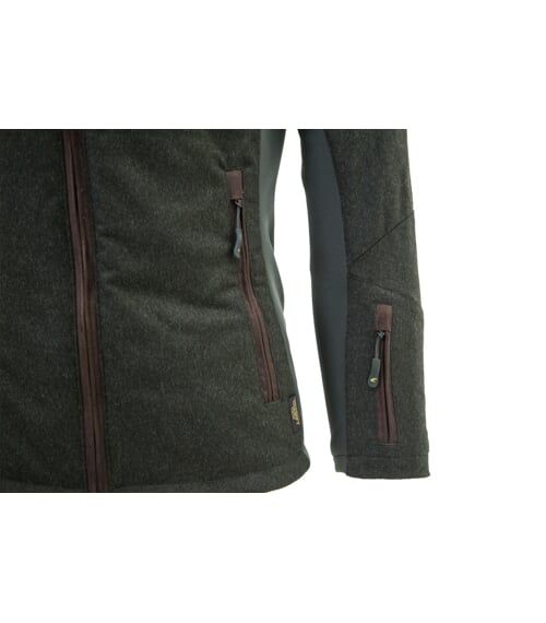 Pružné vsadky zajišťují komfortní a tichý pohyb v lesním prostředí. Vyztužená ramena, větrání v oblasti podpaží, zip podložený légou s ochranou proti profouknutí, zipy vybavané tahači pro snadnou manipulaci a garáží, kterou oceníte zvláště při zapínání u krku stejně jako měkký příjemný fleece na rubu stojacího límce. To vše jsou drobné, ale podstatné detaily, které činí tuto bundu jedinečnou.