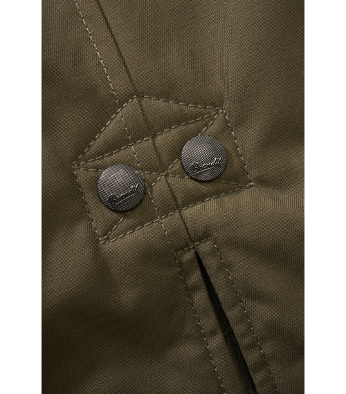 Bunda je vybavena pevnou kapucí se stahováním a vysokým límcem pro lepší ochranu proti větru. Zapínání je řešeno kombinací předního zipu a krycí légy s druky.