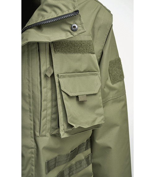 - pod každou z náprsních kapes ještě skrytá kapsa s bočním přístupem a zapínáním na zip