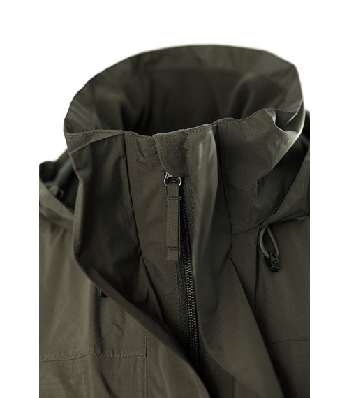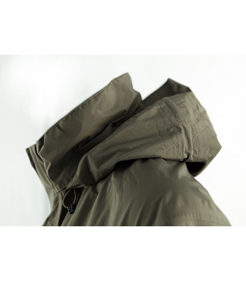 • Bunda je opatřena neodnímatelnou kapucí, která je skrytá v límci pod chlopní spínanou stuhovými uzávěry (suchý zip). Kapuce je dostatečně velká, aby ji bylo možné nosit i přes ochrannou přílbu a její velikost lze upravit ve dvou směrech. Kapuce má rovněž zpevněný kšilt.