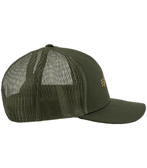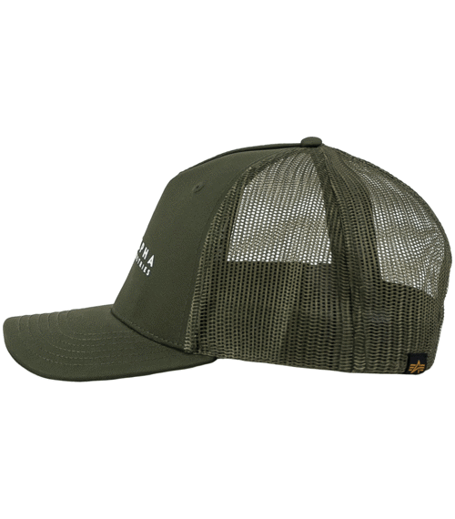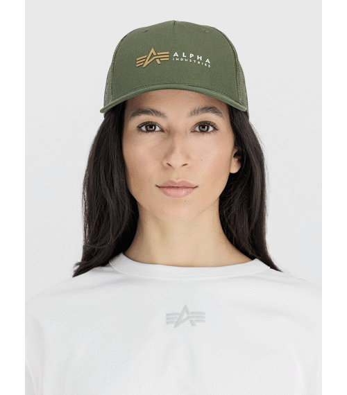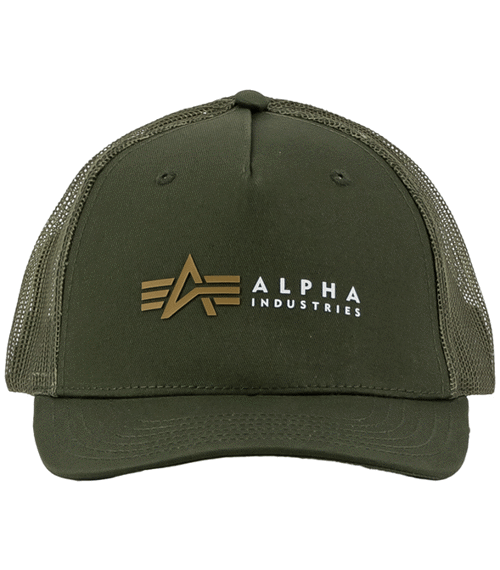 Trucker kšiltovka značky Alpha Industries s výrazným logem na přední straně. Kombinuje pevný přední panel s prodyšnou síťovanou zadní částí, která zajišťuje lepší ventilaci při nošení v teplejším období.
