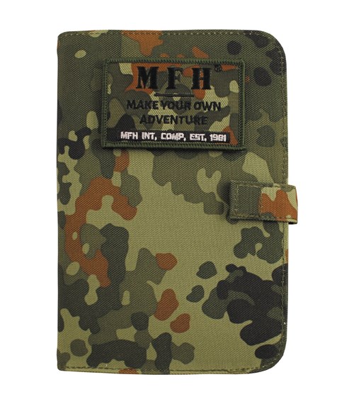 • Pevný textilní obal s panelem stuhového uzávěru na čelní straně pro možnost připevnění jmenovky nebo jiné nášivky. Na vnitřní straně zásuvné kapsy a úchyty pro psací potřeby. Patka se stuhovým uzávěrem proti nežádoucímu otevření.