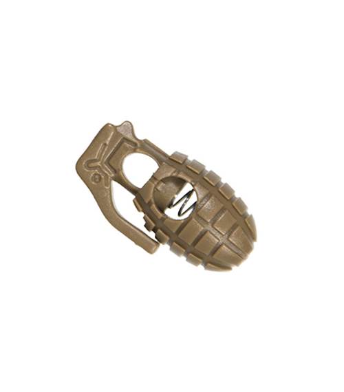 Stylová brzdička ve tvaru granátu MK2, lidově nazývaného pineapple (tvarem připomíná ananas). Lze navléknout na tkanici, šnůru apod. do tloušťky 6 mm