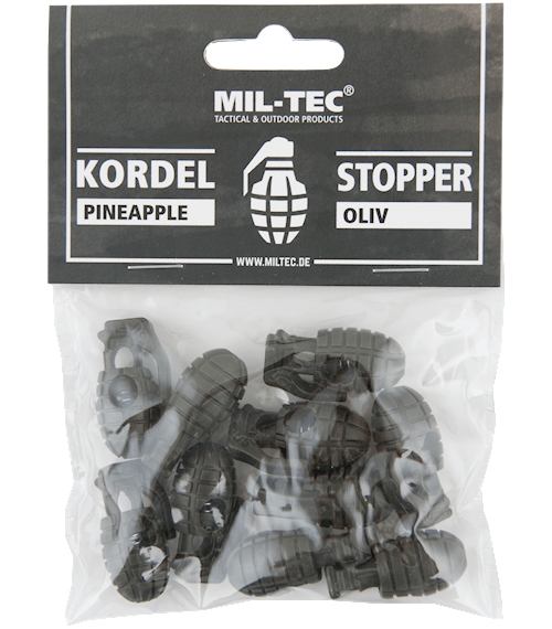Stylová brzdička ve tvaru granátu MK2, lidově nazývaného pineapple (tvarem připomíná ananas). Lze navléknout na tkanici, šnůru apod. do tloušťky 6 mm
