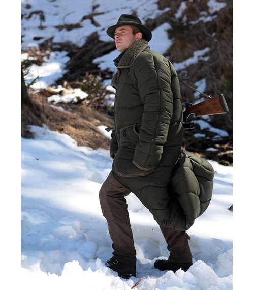 Die Anstizjacke mit Fussteil Webpelz wurde für den Einsatz unter extremen Bedingungen konzipiert. Das 2in1 System bietet Verwendung als Mantel und Ansitzsack. Dieses Modell ist seit neuestem in 3 Größen erhältlich und ist für Frau und Mann geeignet (evtl. Medium für Jägerin). Ein hoher, weitenverstellbarer Kragen bietet Schutz vor Wind und Kälte ohne Einschränkung der akustischen Wahrnehmung. Die Armabschlüsse aus Thermofleece halten die Hände besonders warm.