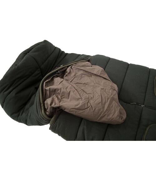 Ein zusätzliches Feature bietet ein Fußsack aus wasserfestem und robustem Material. Dieser ist im Fußbereich einknöpfbar und verhindert eine Verschmutzung des Ansitzsackes in diesem Bereich, gleichzeitig kann man ihn als Packsack verwenden.