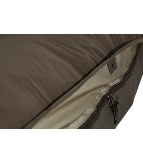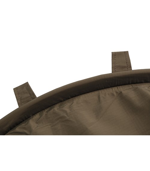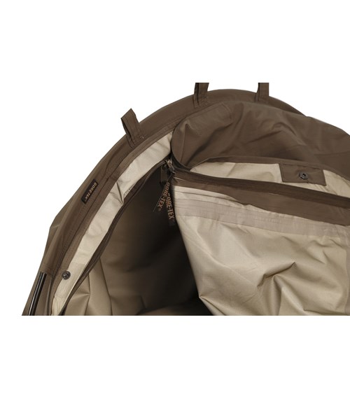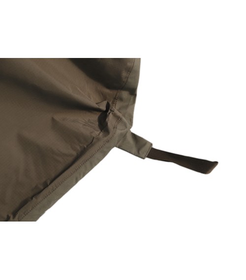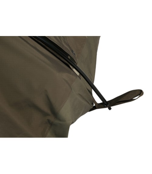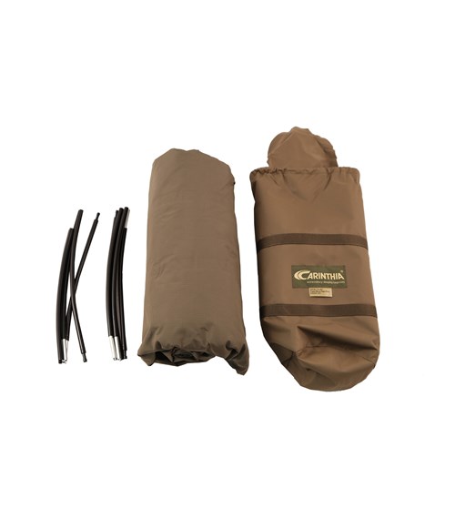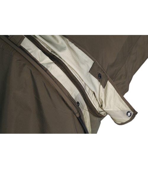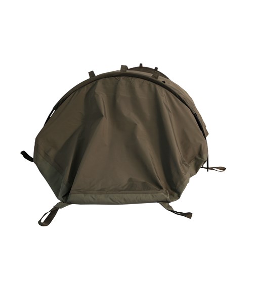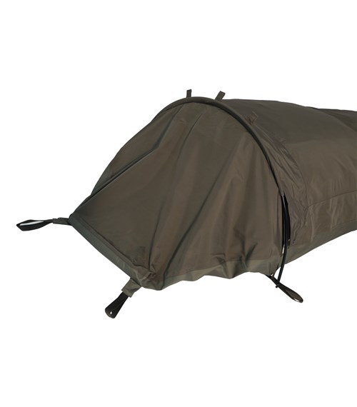 Ein-Mann-Biwakzelt entwickelt für Spezialkräfte. Mittels zwei rundherum verlaufenden Reißverschlüssen lässt sich der Mittelteil öffnen. Die Reißverschlüsse sind durch speziell entwickelte Sturmklappen wasserdicht. Das integrierte Moskitonetz kann separat geschlossen werden. Durch fünf integrierte Schleifen auf der Rückseite kann die Isoliermatte fixiert werden
