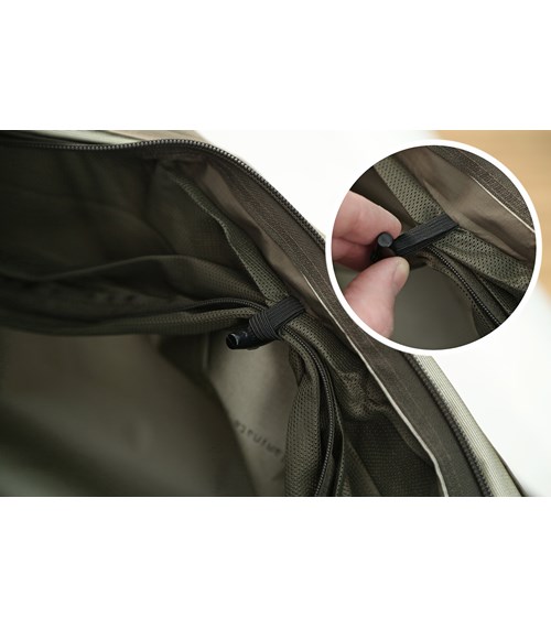 The L-shaped access openning can be closed with 2 zippers. The specially designed storm flap ensures that the zippers are sealed to be absolutely waterproof. The 5 loops on the back of the XP-two keep the insolation mat in place.