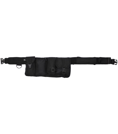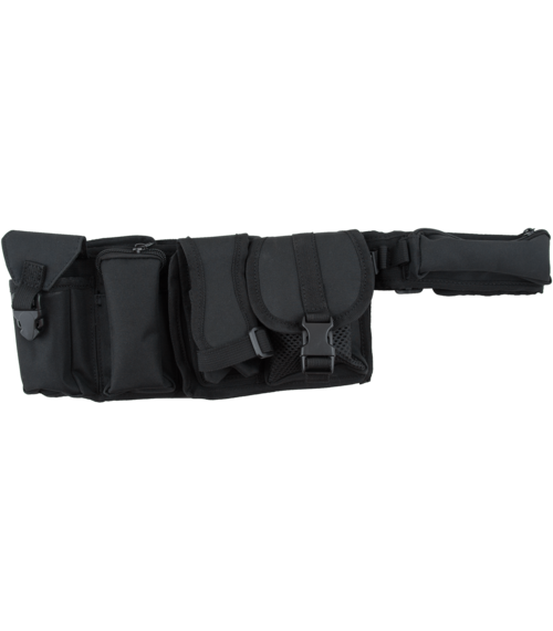 1 große RV-Tasche mit 2 aufgesetzten Taschen, 1 kleine RV-Tasche und 1 kleine Tasche mit Clip, 1 Quertasche mit RV, längenverstellbar bis 120 cm, 1 D-Ring, 100 % Polyester