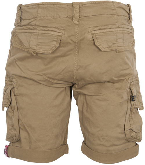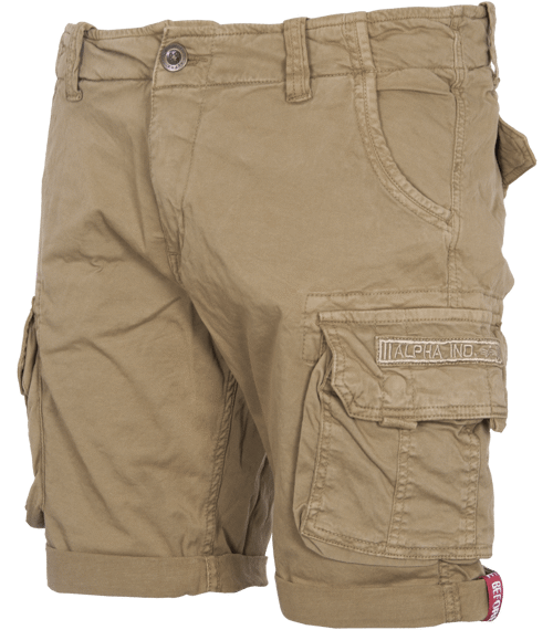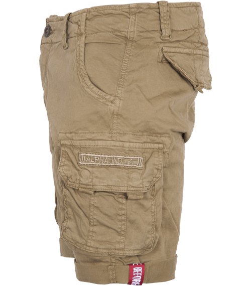 Šest kapes, z toho dvě cargo, na všechny nezbytnosti, které potřebujete s sebou. Jednoduchá dekorativní nášivka "ALPHA IND." Bílý potisk "CREW SHORT" na vnitřní straně pasu a rafinovaně umístěná červená stuha "REMOVE BEFORE FLIGHT" na založení levé nohavice.