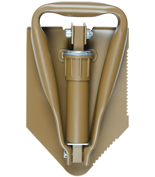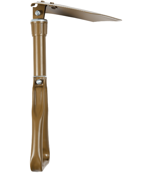 Snadným rozložením ve třech ohybech vznikne účinný nástroj, který lze alternativně použít jako lopatku, rýč nebo nouzovou pilku