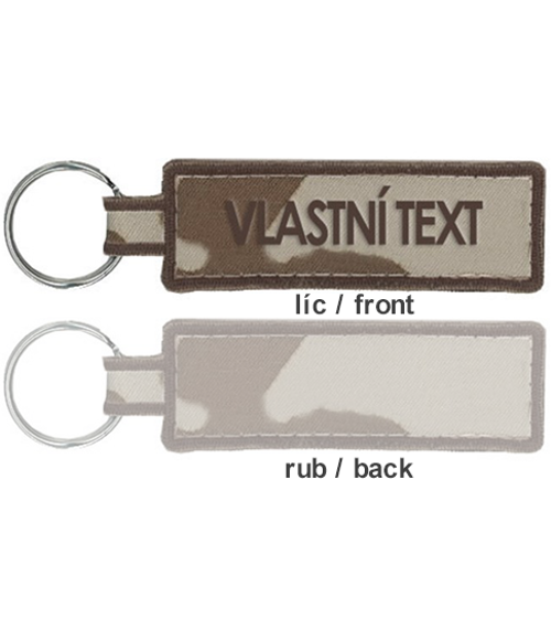 • Textilní přívěšek s kroužkem na klíče a zakázkově vyšitým textem.