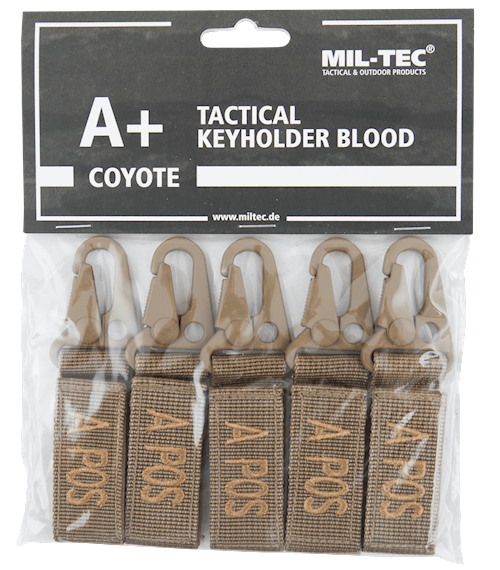 Sada klíčenek s označením krevní skupiny A POS.