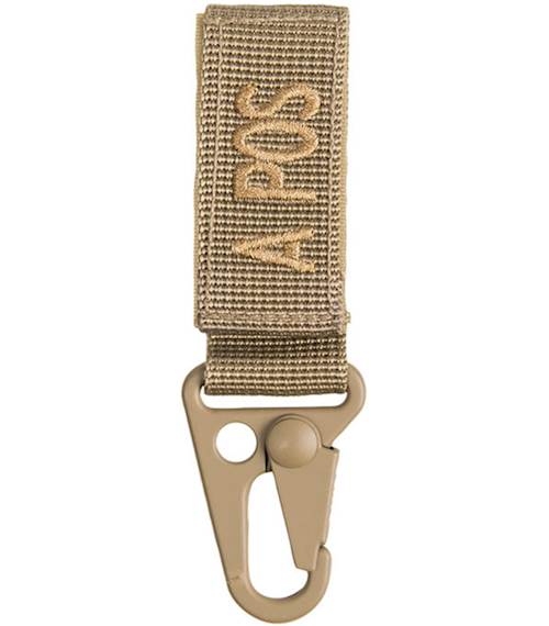 Snadné zavěšení na poutko, nebo popruh oděvu, batohu, nebo jiné výstroje. Oko klíčenky je spojené stuhovým uzávěrem.