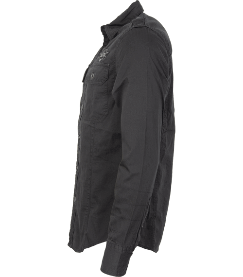 Volnočasová elegantní košile s dlouhým rukávem. Zhotovena z lehčího, ale pevného bavlněného materiálu mírně opraného vzhledu. Klasický střih a doplňky odkazující ke stylu vojenských košil z ní dělají ideální chlapskou košili, ve které ve městě rozhodně vyniknete.