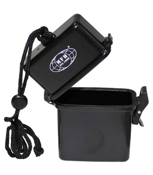 Plastová krabička s vodotěsným víkem. Poslouží pro uložení důležitých drobností, které je potřeba při cestování a pobytu v přírodě ochránit před vlivem počasí a vnější vlhkostí.