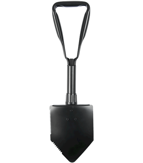 Snadným rozložením ve třech ohybech vznikne účinný nástroj, který lze alternativně použít jako lopatku, rýč nebo nouzovou pilku.