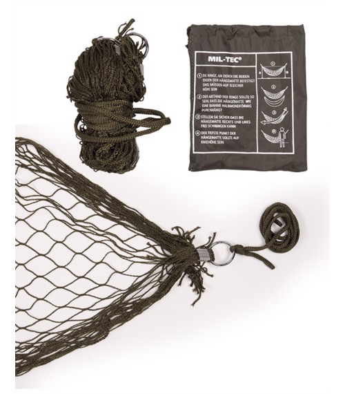 - Závěsná síť pro spaní, v khaki barvě, vyrobená ze speciáního nylonového materiálu, velmi lehká, používaná místo karimatek - výhodnější pro svoji skladnost a váhu