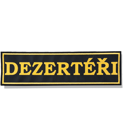 • Žlutý nápis "Dezertéři" na černém podkladu, žluté lemování