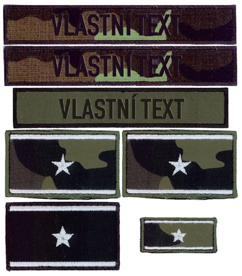 • Pro usnadnění objednávání nabízíme typickou vojenskou sadu jmenovek včetně potřebného hodnostního označení na polní uniformu a svetr