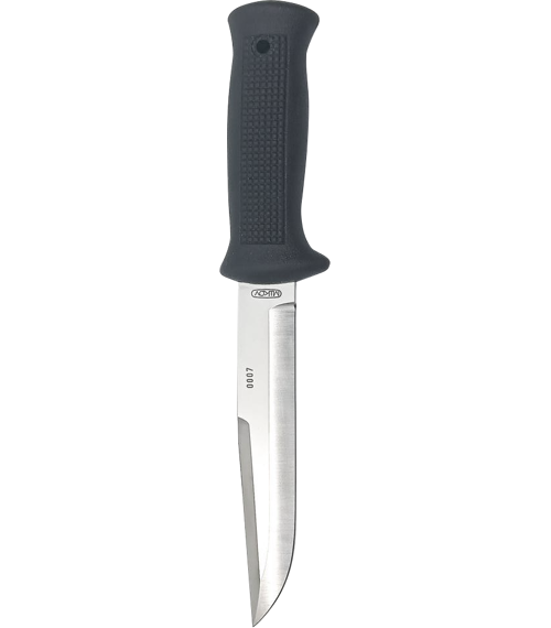 • černěný (foto 2); POZNÁMKA: Tento typ se vyrábí z uhlíkaté oceli a povrch je upraven chemickým černěním z důvodu ochrany proti korozi. Výrobce nedoporučuje černěné nože používat pro krájení potravin (ale použít výhradně nožů s čepelí z nerezové oceli, k tomu přímo určených). Např. ovocná šťáva obsažená v ovoci je chemicky agresivní a vyvolá reakci s černěním v místě kontaktu, čímž dochází k porušení povrchové vrstvy. Dále je nutné u nožů z uhlíkaté oceli, které nemají povrch chráněny proti korozi nebo mají povrch používáním opotřebovaný, po každém použití čepel otřít, vysušit a nakonzervovat antikorozním nezávadným přípravkem, pro delší životnost čepele