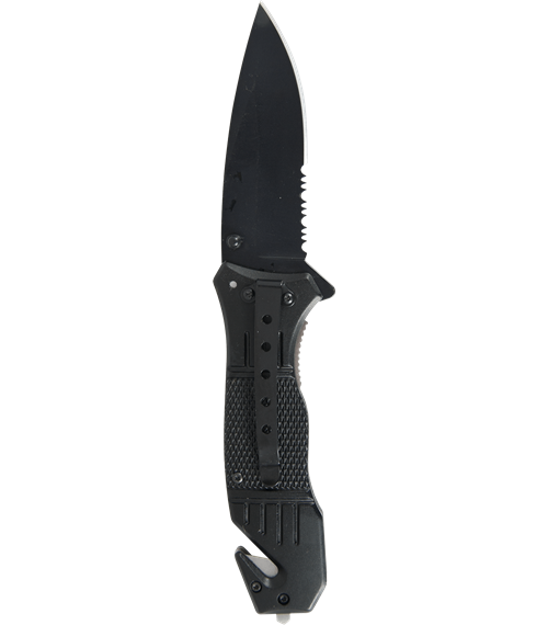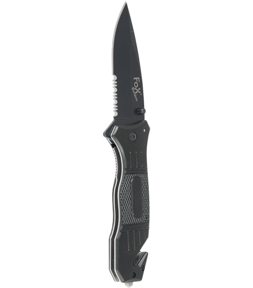 • Na zadním konci střenky se nachází nástroj pro přeřezávání lan nebo popruhů a také hrot pro rozbíjení skleněných tabulí. Tyto nástroje se mohou hodit například při vyprošťování v případě vzniku nouzové situace nebo nehody.