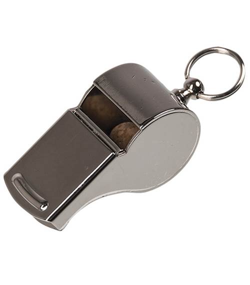 Kovová armádní píšťalka zhotovená z poniklované mosazi.