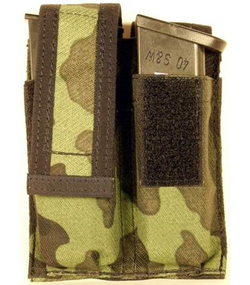Dvě samostatné komory pro zásobníky, pevný ale pružný materiál, každá komora zavíraná samostatnou chlopní na suchý zip