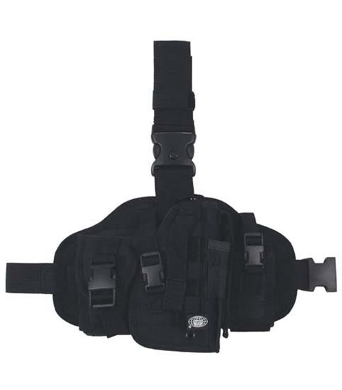 - K upínání na stehno slouží vyztužený pás a široký popruh se sponou. Sesouvání pouzdra po noze dolů zabraňuje vertikální popruh, který lze pomocí průvleku připevnit k opasku. Tento popruh je zhruba v polovině spojen plastovou sponou, pozdro lze tedy odebrat bez nutnosti rozepínání opasku