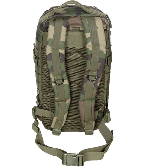 Batoh je rozdělen na dvě samostatné větší části, které jsou uzavíratelné zdrhovadly se dvěma jezdci. Na čelní stěně se navíc nacházejí dvě svrchní kapsy rovněž zavírané zdrhovadly opatřenými dvěma jezdci.