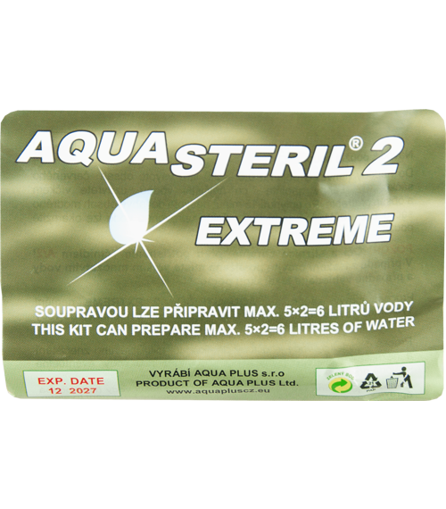 AQUASTERIL EXTREME - balení určené pro přípravu 2 litrů vody (5 dávek), celkem 10 litrů