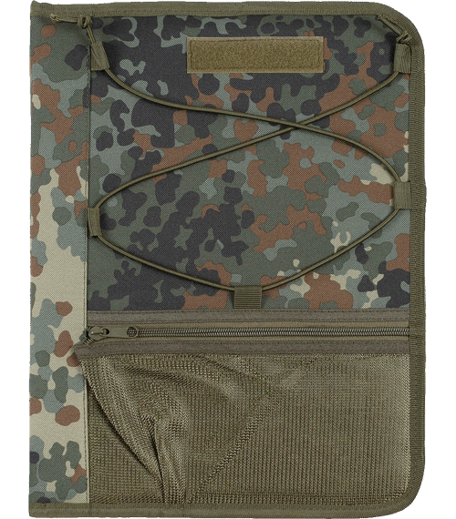 • Na přední straně spisovky navíc síťovaná kapsa uzaviratelná zdrhovadlem a překřížená pružná tkanice.