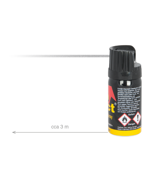 Obranný pepřový sprej s úzkým rozptylem pro přímý zásah útočníka.