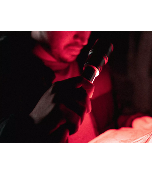 - nouzové červené světlo (nižší intenzita) - 4 lumeny | výdrž 60 hodin | dosvit 4 metry
