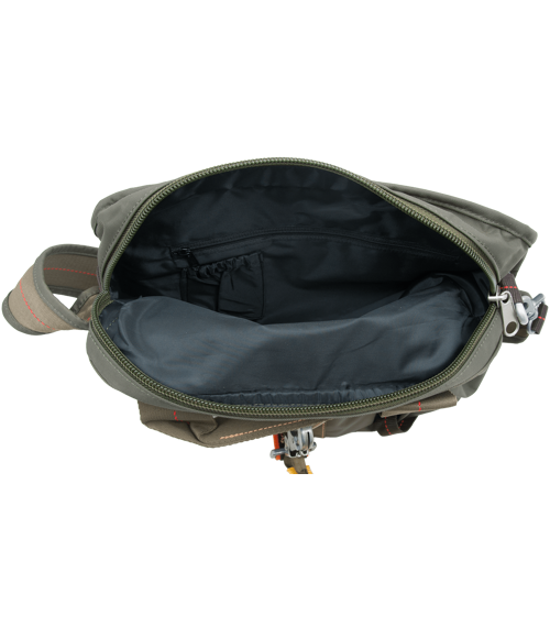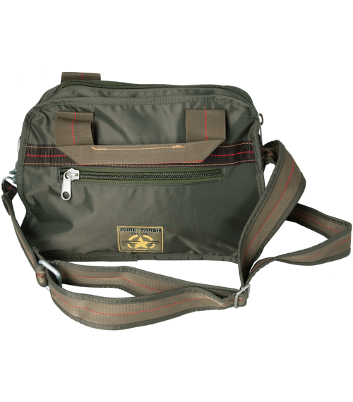 Hlavní úložný prostor je zavíraný zdrhovadlem. Uvnitř tašky se nachází kapsa uzavíraná zdrhovadlem a navíc taštička na mobil