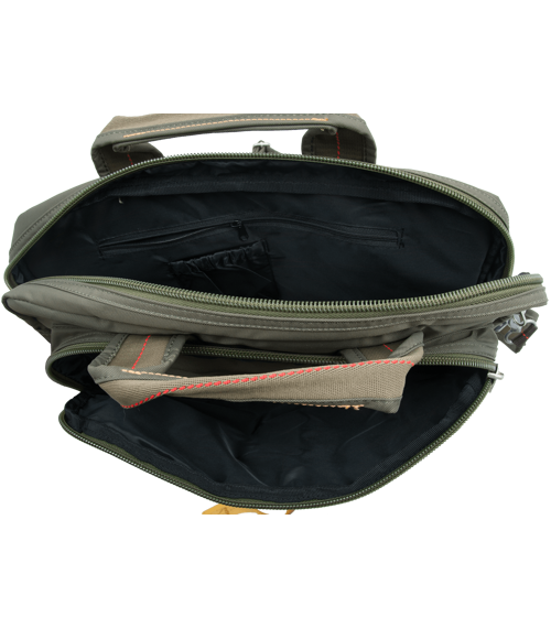 Na čelní stěně se nacházejí dvě samostatné kapsy uzavírané zdrhovadlem. V zadní stěně je rovněž zhotovena jedna kapsa.