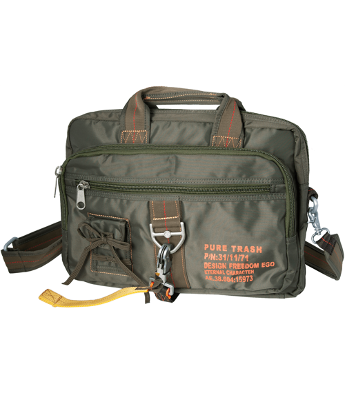 Tašku lze nést jak v ruce, tak zavěšenou přes rameno, k čemuž slouží popruh stavitelné délky.