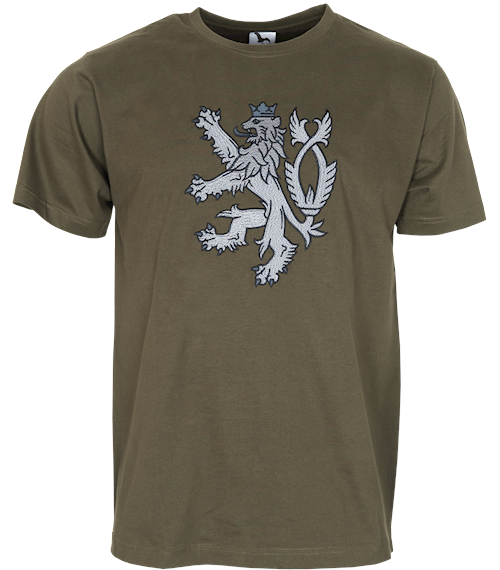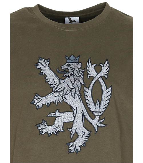 Kvalitní tričko s detailně provedenou plošnou výšivkou Českého lva na hrudi.