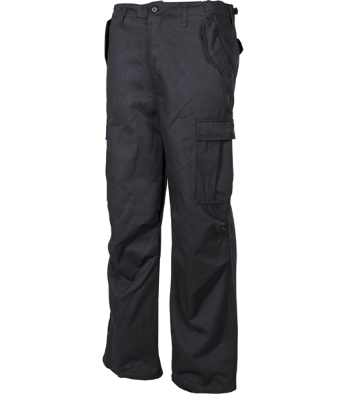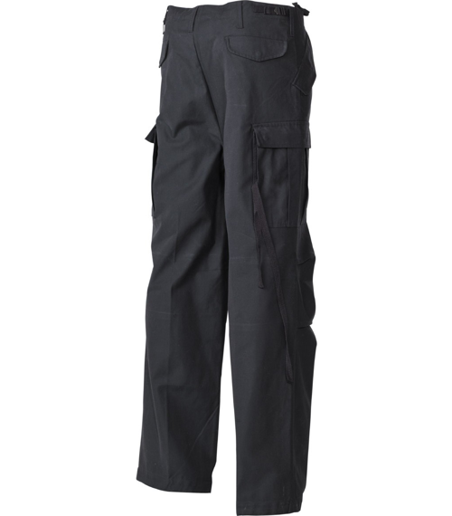 Die klassische US ARMY Hose, "M 65", original Material, originales Design! 2 große Seitentaschen mit angenähten Bändern, 2 Gesäßtaschen mit Deckel und Druckknöpfe, 2 Schubtaschen mit Deckel und Druckknopf vorne, Bandzug am Beinende, 50 % Nylon, 50 % Baumwolle