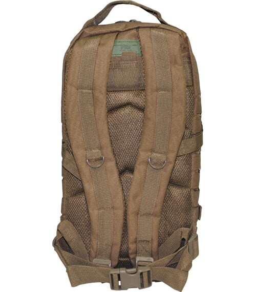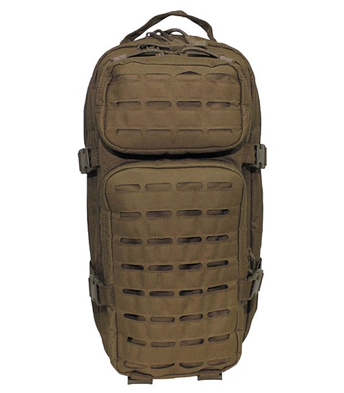 2 big pockets with zipper and net, 2 big front pockets with zipper, adjustable and padded shoulder belts, with D-rings, interior pouch at the back for hydration pouch, different Molle-position points, carrying handle, breathable back and shoulder strap, ca. 30 ltr capacity, 100 % polyester, size: rucksack 45 x 25 x 20 cm