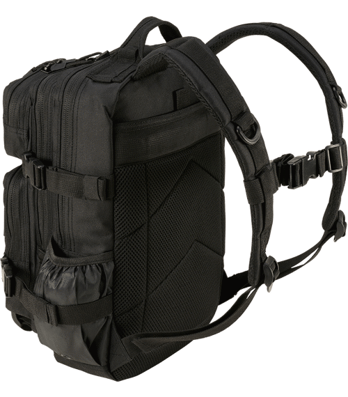 Polstrovaná záda i ramenní popruhy. Systém molle. Panely suchého zipu, které umožňují využít libovolné nášivky a dodat tak batohu nezaměnitelný originální vzhled.