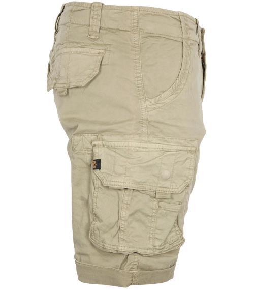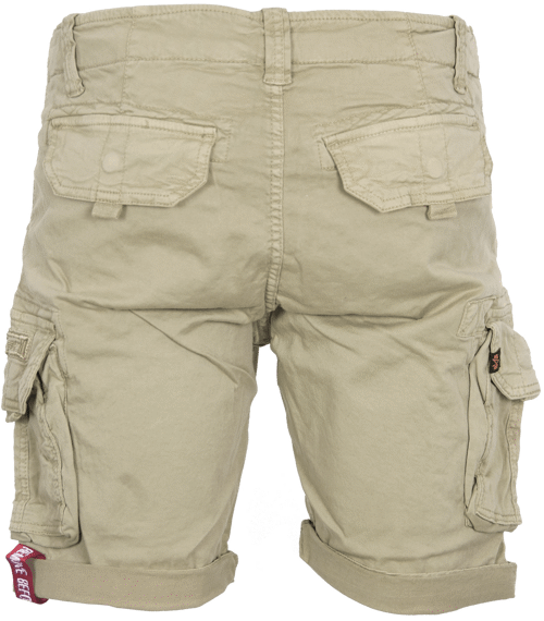 Šest kapes, z toho dvě cargo, na všechny nezbytnosti, které potřebujete s sebou. Jednoduchá dekorativní nášivka "ALPHA IND." Bílý potisk "CREW SHORT" na vnitřní straně pasu a rafinovaně umístěná červená stuha "REMOVE BEFORE FLIGHT" na založení levé nohavice.