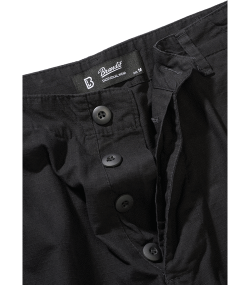 Kraťasy ve stylu klasických dlouhých kalhot polní bojové uniformy US ARMY (kalhoty US ARMY (BDU - Battle Dress Uniform). Jsou zhotoveny z lehké bavlny opatřené zpevňující osnovou RipStop, která brání šíření případných trhlin.