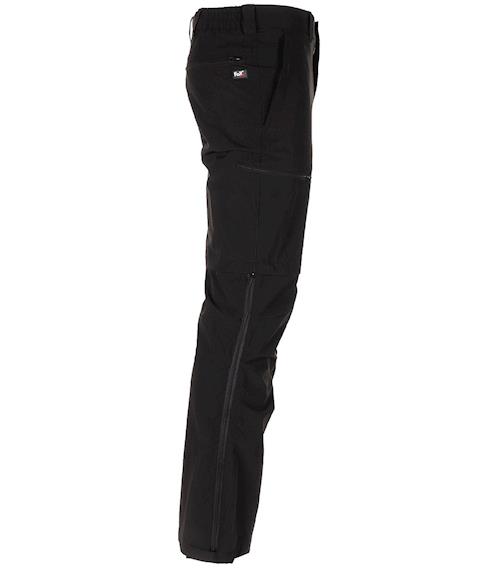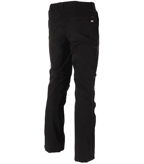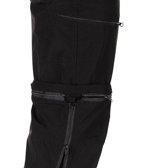 - odepínací nohavice - díky kombinaci dvou zipů do tvaru písmene T je možné nohavice odepnout bez zouvání bot. Rychlý způsob převlečení bez rizika namočení a ušpinění ponožek při zouvání bot v terénu.
