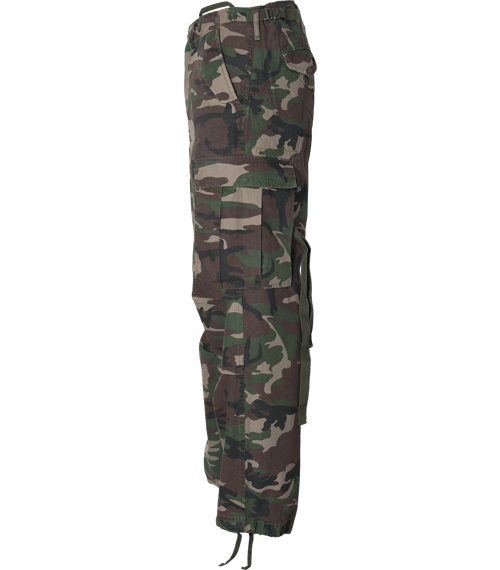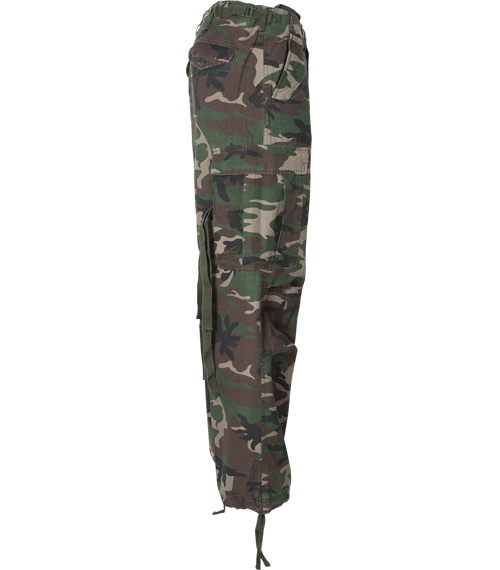 Real cushy Loose Fit slacks made by Brandit. With 2 large pockets on the legs. The style becomes extra cool with the long, attached straps on the side-pockets. With these you can tuck up the trousers leg and fix it. This pant comes in the typicall vintage-style: stonewashed, real soft cotton and a used look.