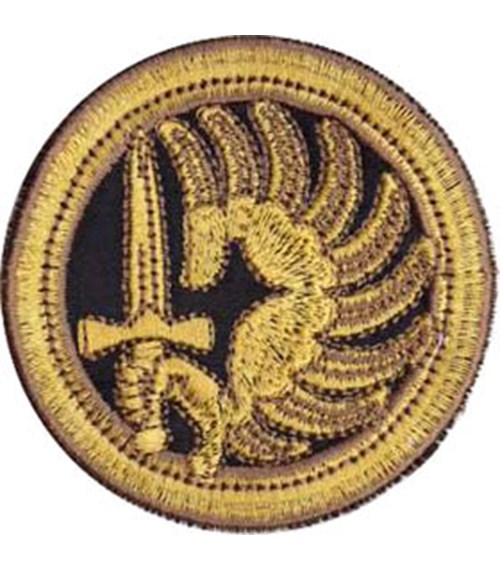 • Kruhová nášivka s jemnou zlatou výšivkou